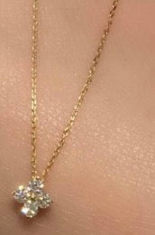 A delicate four-leaf charm necklace symbolizing luck and beauty, set in gold.